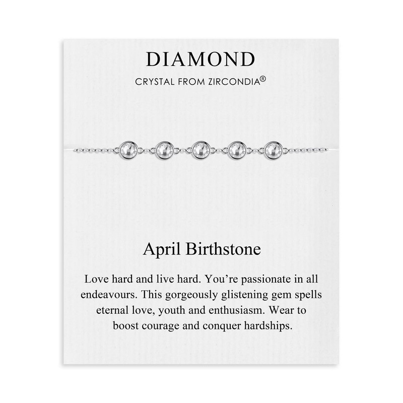 - Made with Trust. April Birthstone Bracelet Created with Diamond Zircondia Crystals by Philip Jones. Buy with confidence with our 12-month manufacturer warranty and 30-day money back guarantee if you are not 100% happy with your Bracelet.