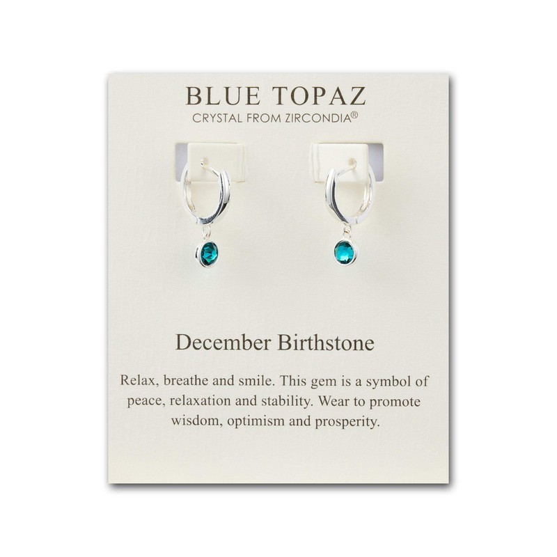 - Made with Trust. December Birthstone Hoop Earrings Created with Blue Topaz Zircondia Crystals by Philip Jones. Buy with confidence with our 12-month manufacturer warranty and 30-day money back guarantee if you are not 100% happy with your Earrings.