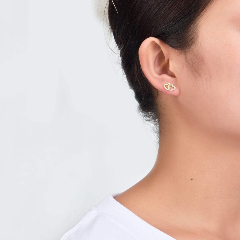 Introducing the Gold Plated Heart Link Earrings, adorned with sparkling Zircondia Crystals. Crafted with hypoallergenic Gold plating on a sturdy brass alloy base, these stud earrings are designed for everyday wear, measuring 7mm in height and 11mm in width. Each earring features 12 shimmering clear crystals, perfectly cut in a round shape measuring 1mm. The set comes beautifully packaged in a gift pouch for an added touch of elegance. Elevate your style with these exquisite earrings from Philip Jones.