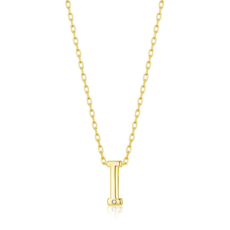 Philip Jones Gold Plated Initial Necklace Letter I Created with Zircondia® Crystals