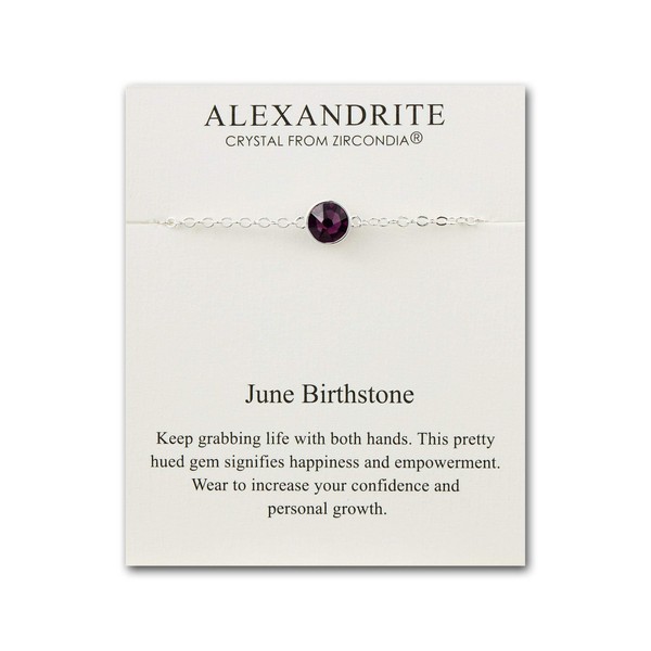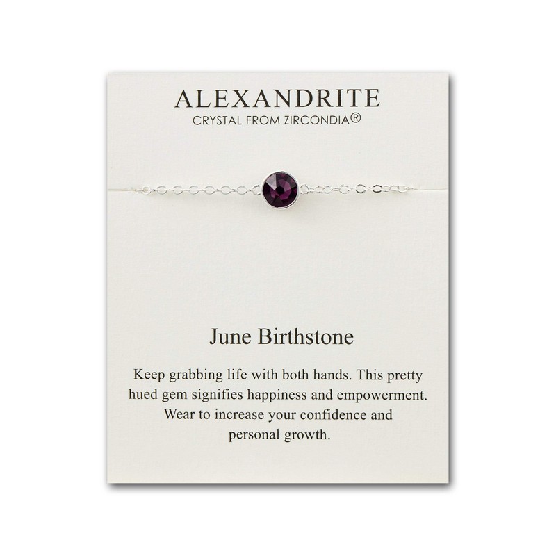• Made with Trust. June (Alexandrite) Birthstone Anklet Created with Zircondia Crystals by Philip Jones. Buy with confidence with our 12-month manufacturer warranty and 30-day money back guarantee if you are not 100% happy with your Anklet.
