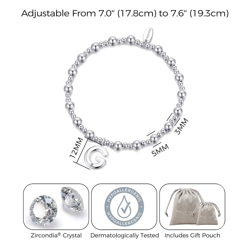 - Made with Trust. Letter G Initial Stretch Bracelet Created with Zircondia Crystals by Philip Jones. Buy with confidence with our 12-month manufacturer warranty and 30-day money back guarantee if you are not 100% happy with your Bracelet.