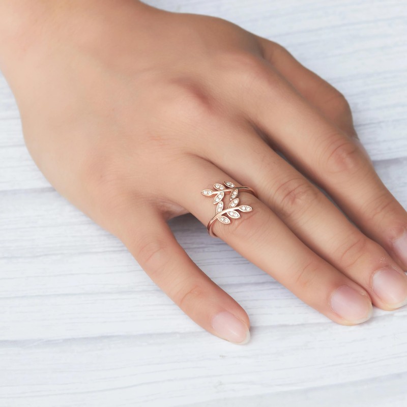 • Made with Trust. Rose Gold Plated Adjustable Leaf Ring Created with Zircondia Crystals by Philip Jones. Buy with confidence with our 12-month manufacturer warranty and 30-day money back guarantee if you are not 100% happy with your Ring.