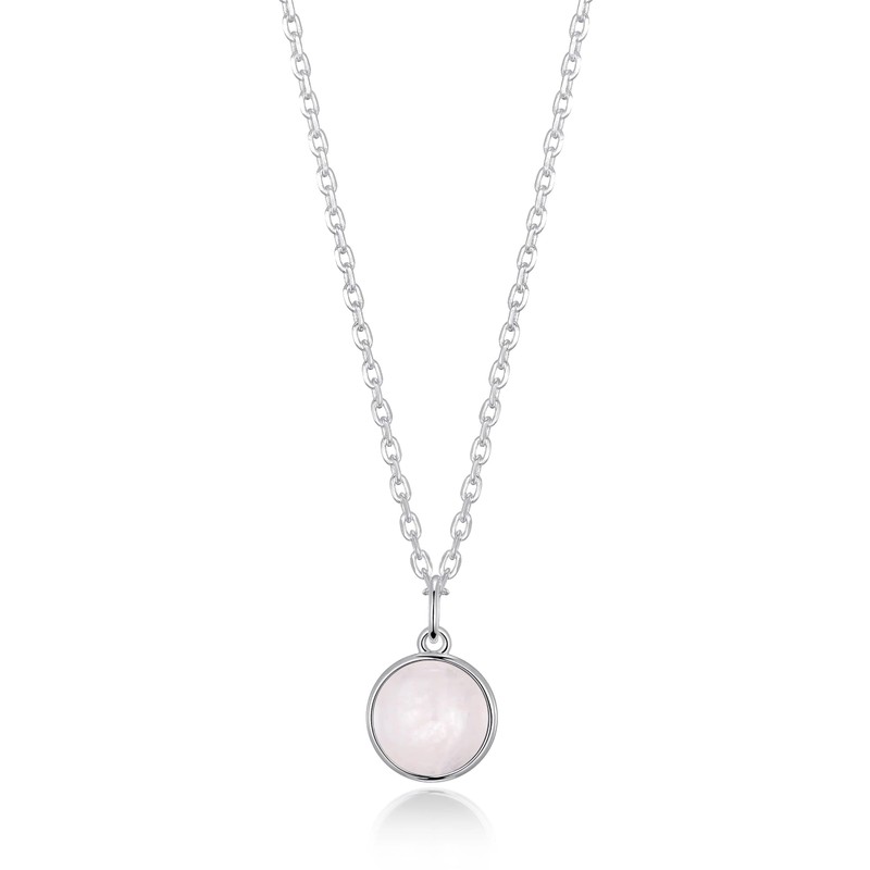 Philip Jones' Silver Plated Brass Alloy Pendant Necklace measures 9.5mm (H) x 9.5mm (W) with an overall length of 43cm + 5cm Extender. A cable chain and lobster claw closure secure the 3.48g piece which is set with a 9mm round Rose Quartz gem in a deep pink hue.