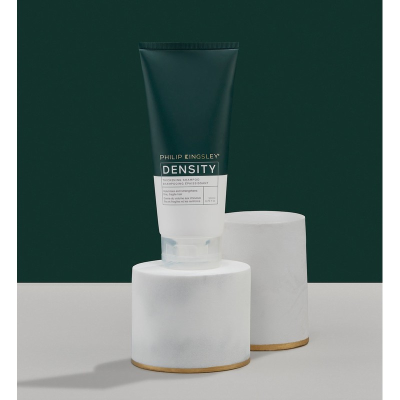 The Philip Kingsley Density Thickening Shampoo 200ml is designed to enhance hair volume and thickness. This expertly formulated shampoo is perfect for those seeking to boost their hair's density and fullness. Infused with a unique blend of ingredients, it gently cleanses while providing essential nutrients to the hair and scalp. The result is visibly thicker, healthier-looking hair with improved texture and body. Ideal for fine or thinning hair, this shampoo helps to create the appearance of fuller locks with regular use. What are the features and benefits of Philip Kingsley Density Thickening Shampoo 200ml? Enhances hair volume and thickness for a fuller appearance. Gently cleanses while nourishing the hair and scalp. Improves hair texture and body with regular use. Ideal for fine or thinning hair types. Who is Philip Kingsley Density Thickening Shampoo 200ml for? Perfect for individuals with fine or thinning hair looking to enhance volume and thickness.