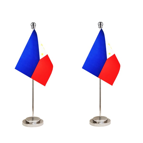 Philippines Filipino Deluxe Desk Flag Set Small Mini Miniature Philippines Filipino Table Desktop Flags,Festival Events Celebration,Office Decoration-2 Pack