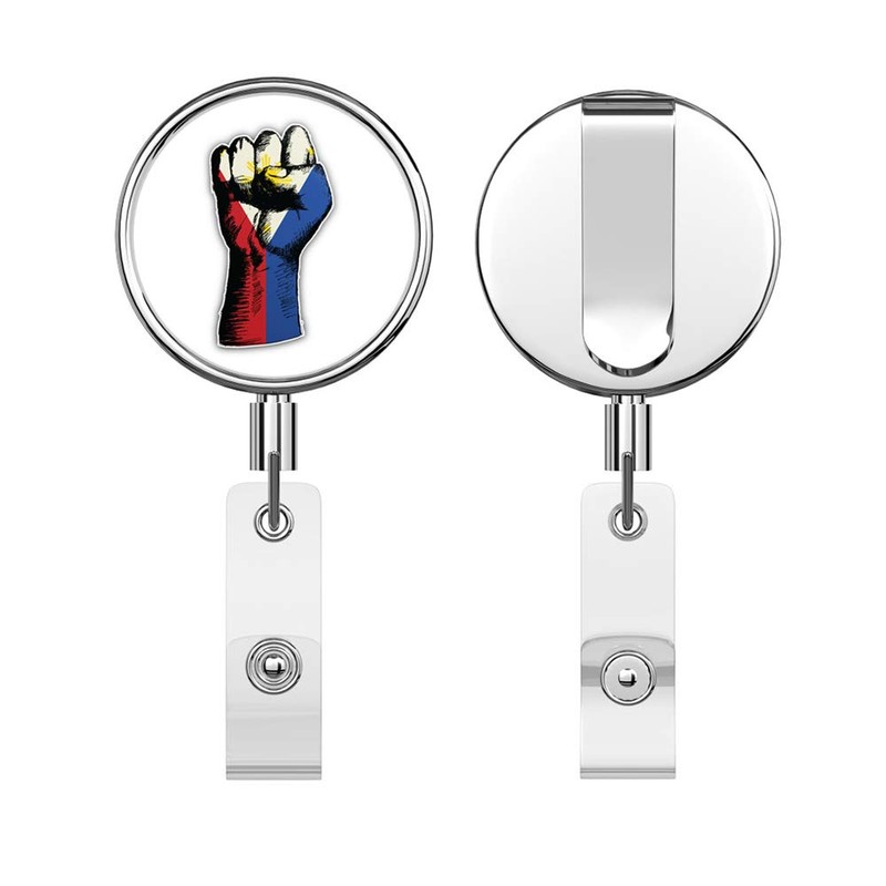 Philippines Hand Flag Sketch Round ID Badge Key Card Tag Holder Badge Retractable Reel Badge Holder with Belt Clip