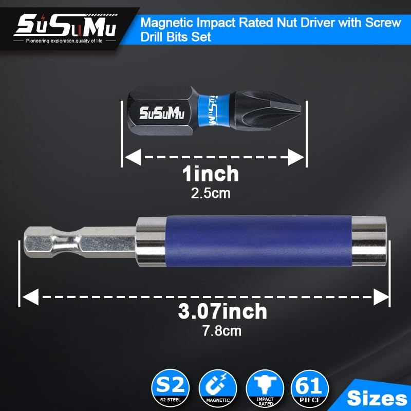 - Phillips Bits #2 Impact (61PCS), Screwdriver Bit Set, Insert Drill Bit Set With Extension Magnetic Nut Driver, Power Tool Accessories For Home Building, Electronic Mechanical Repair