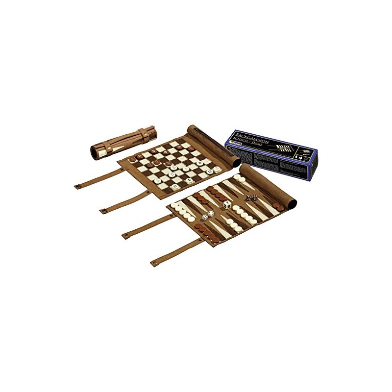 Philos 2801 - Reise-Schach-Backgammon-Dame-Set, aus Kunstleder zum Rollen, Feld 25mm