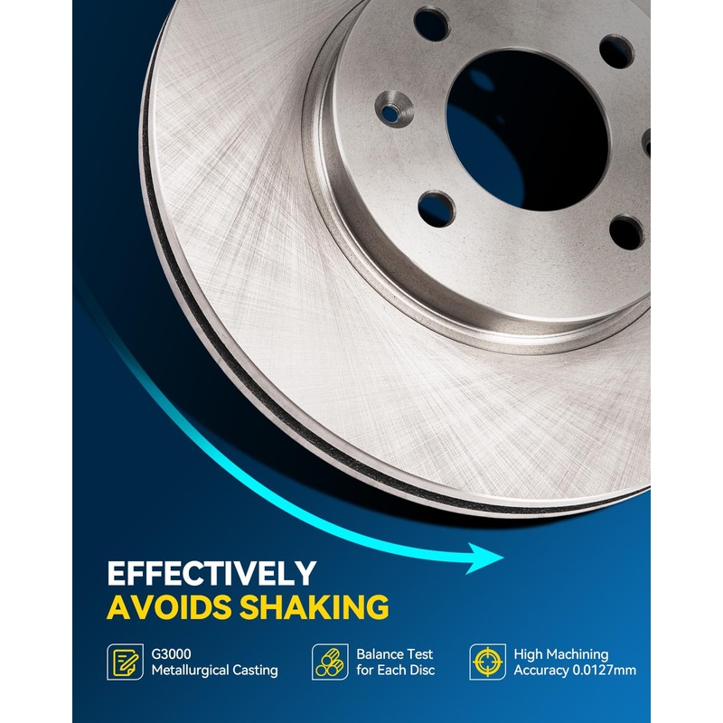 - [High quality material]:G3000 metallurgy and metallic coating of brake discs can effectively prevent rust and corrosion, extending the lifespan.