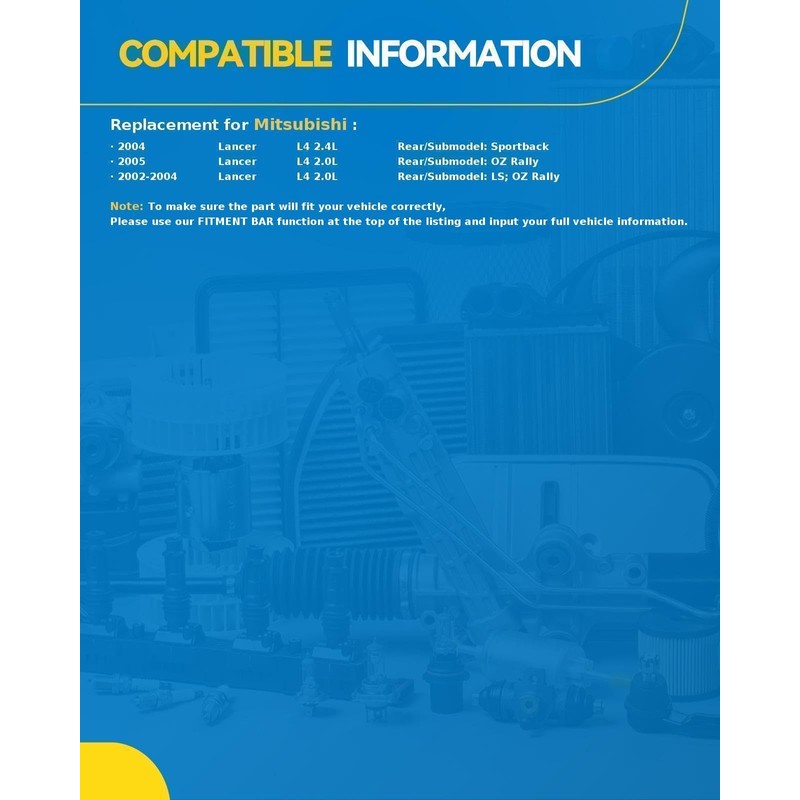 - Compatibility: Rear Wheel Bearing and Hub Assembly for 2002-2005 Lancer.