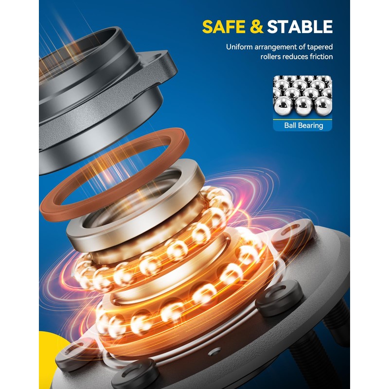 - Recovery Performance: Wheel bearings support the gravity of the entire body and precisely guide the wheel rotation. High-quality wheel hub assemblies allow you to drive your vehicle safely and smoothly.