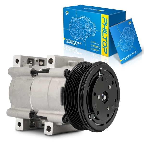 PHILTOP 58161 AC Compressor Compatible with F250/F350/F450/F-550 Super Duty 7.3L 1999-2003, Thunderbird 1989-1995, Cougar 1989-1990, Air Conditioning Compressor with Clutch