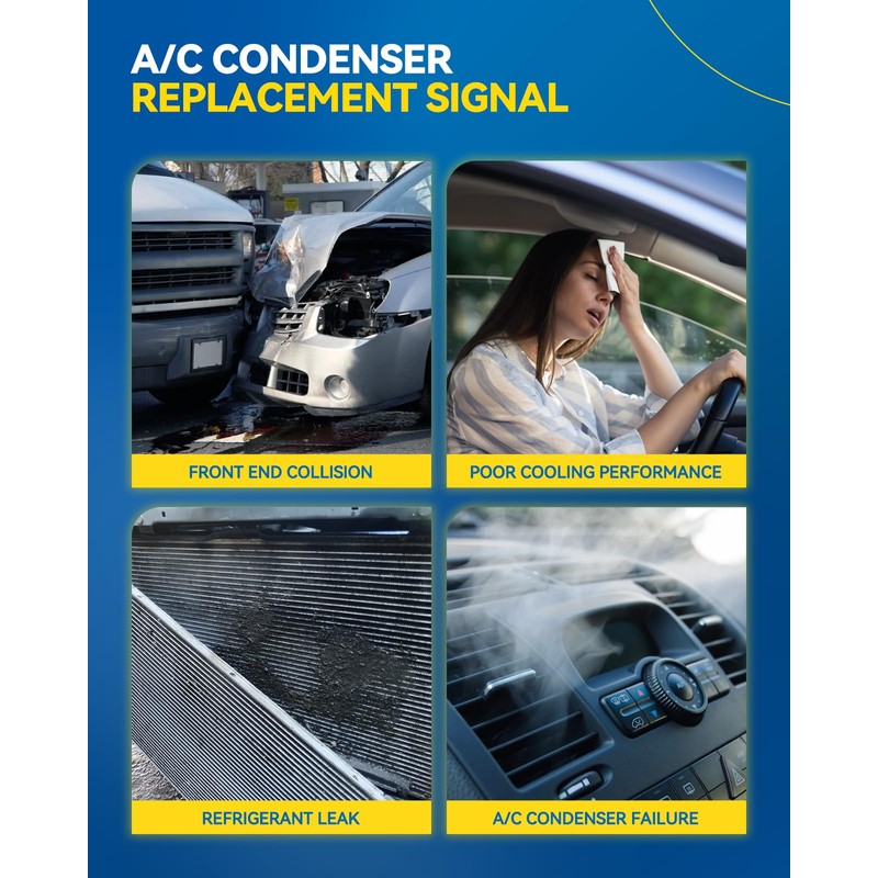 - EFFCIENT COOLING CAPACITY: Using light and thin aluminum tubes to maximize heat transfer without compromising strength. The air conditioner condenser can cool the air inside the car quickly, even in hot environments. This improves your comfort in the car, especially in summer and hot weather