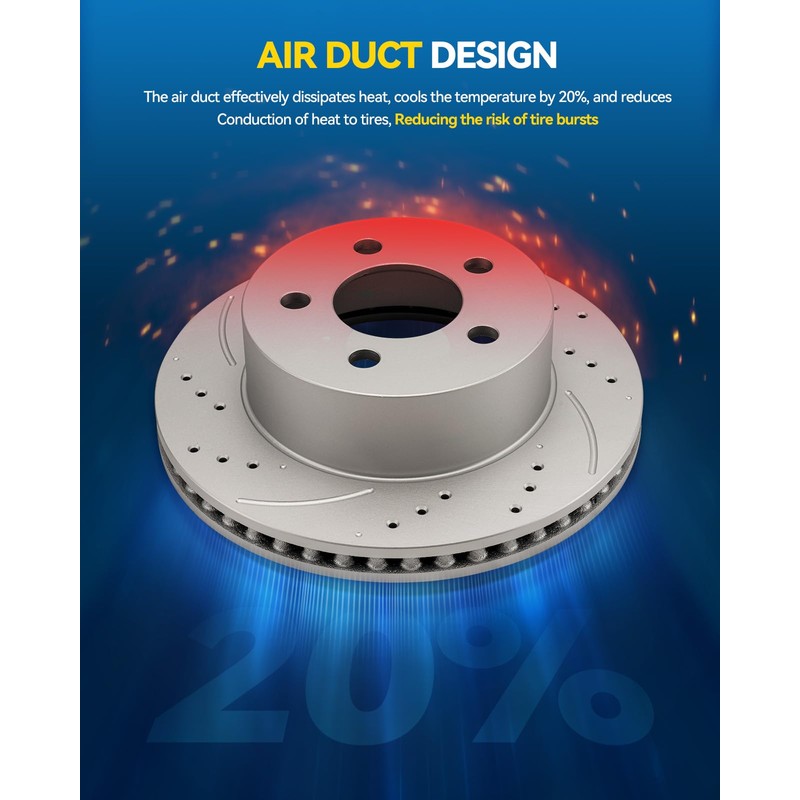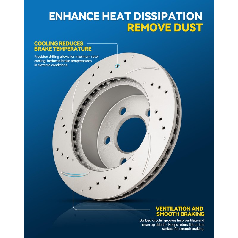 - Excellent Braking Efficiency: Our brake rotor and pad kits meet OEM specifications, ensuring reliability, durability and stability. They can respond to braking commands instantaneously, effectively reducing the braking distance and guaranteeing your driving safety.