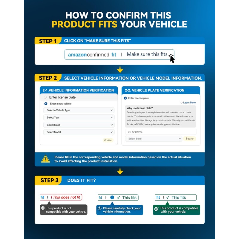 - [Note]: Please check the “Amazon Confirmed Fit” bar at the top of this page before buying product to ensure this product works for your vehicle. If the “Amazon Confirmed Fit” bar has an “i” in a blue circle, this product has additional notes. Please hover over the “i” on the bar to see notes before making your purchase.