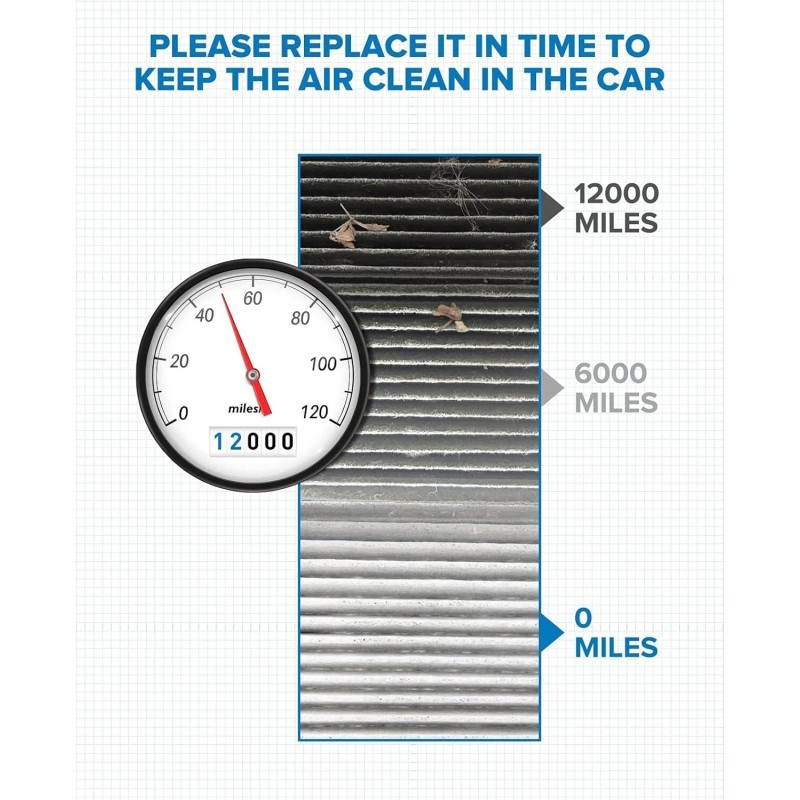 - Replacement Suggestion: To ensure that the air conditioning filter provides you with clean air, recommended replacement 12,000 miles or as specified by the vehicle manufacturer.