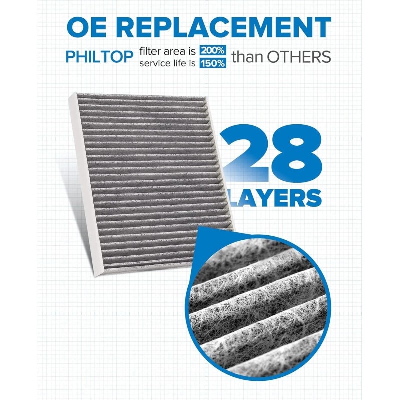 - Triple Efficiency Filtration: PHILTOP cabin air filters are comprised of three layers that provide up to 99% filtration