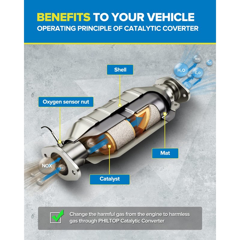 - Perfectly Direcr Fit: This catalytic converter's direct-fit design enables it to work as a bolt-on substitute, making assembly simple. Modern 3D scanning technology is used by PHILTOP during the research and development phase to guarantee that the new converter will fit and work precisely like the original equipment. Gaskets and/or the tools required for fitting are provided.