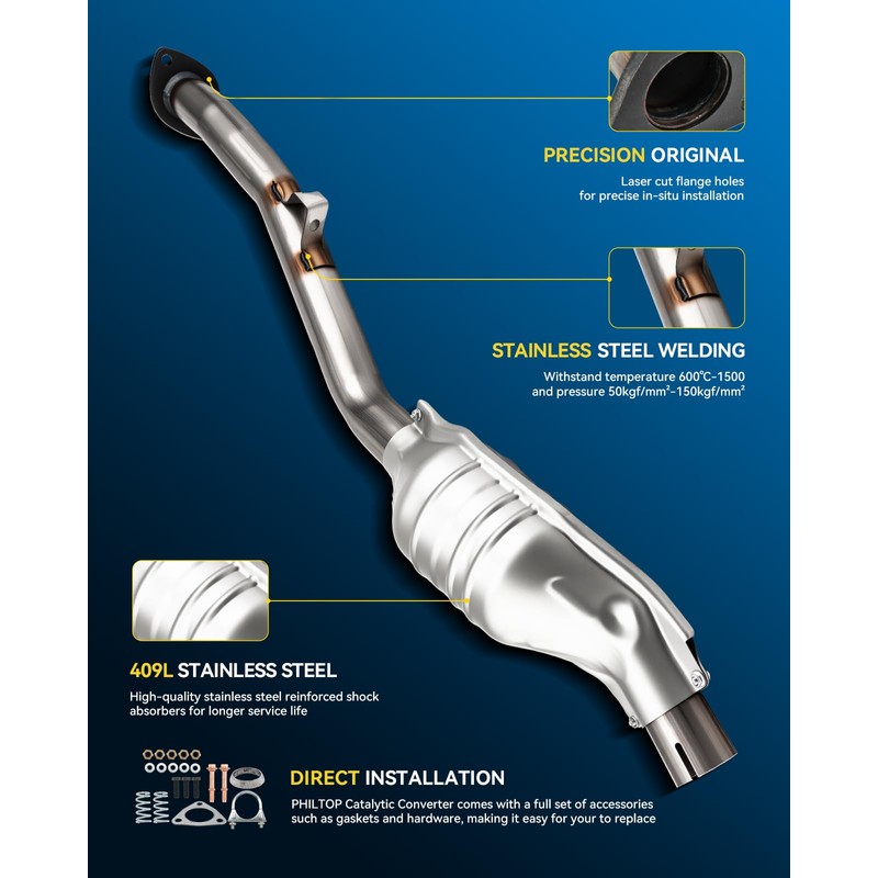 - Excellent Material : The stainless steel body of high-quality aluminized pipes is not easy to rust, ensuring excellent oxygen storage capacity and long service life. The double-layer high temperature resistant ceramic carrier greatly increases the flow rate and surface area, thereby improving power and fuel economy