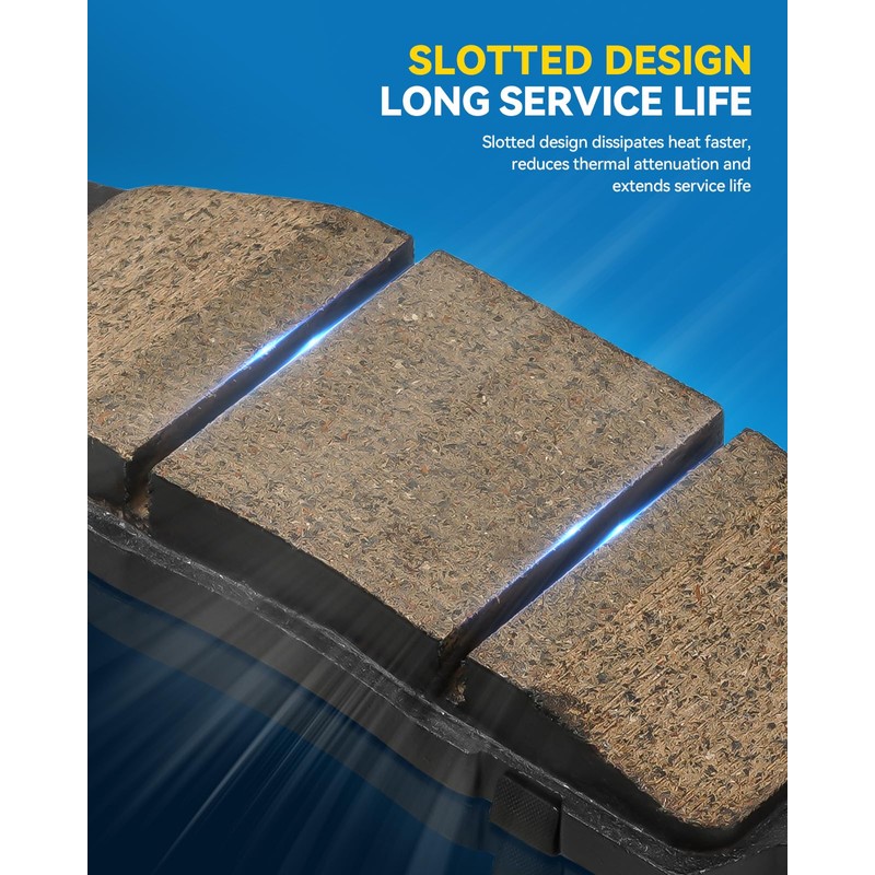 - Durable Material and Longevity: Our brake pads are made of ceramic materials, which can offer outstanding durability. They are built to withstand the rigors of daily driving and heavy use, providing a longer service life compared to conventional brake pads, which means fewer replacements and cost savings for you.