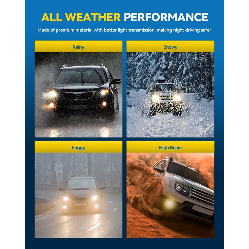 - [IP65 Waterproof & Fully Sealed] Built with an IP65 waterproof rating and rugged silicone sealing to prevent moisture buildup. The fully sealed construction ensures consistent performance in all weather conditions, including rain, snow, and sandstorms, extending the lifespan of your fog lights