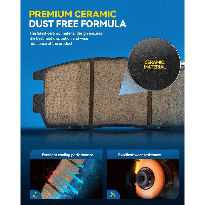- [Customer Support]: 1 Year Unlimited-mileage Quality Guarantee; With being sturdy and brand-new, these Disc Brake Kits are the ideal replacement. Please get in touch with us at any time if the product has any quality issues, such as damage or isn't appropriate for your automobile.