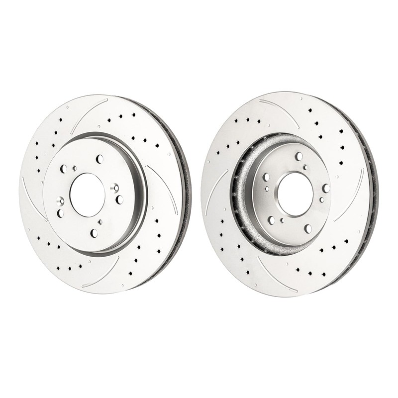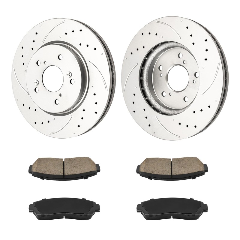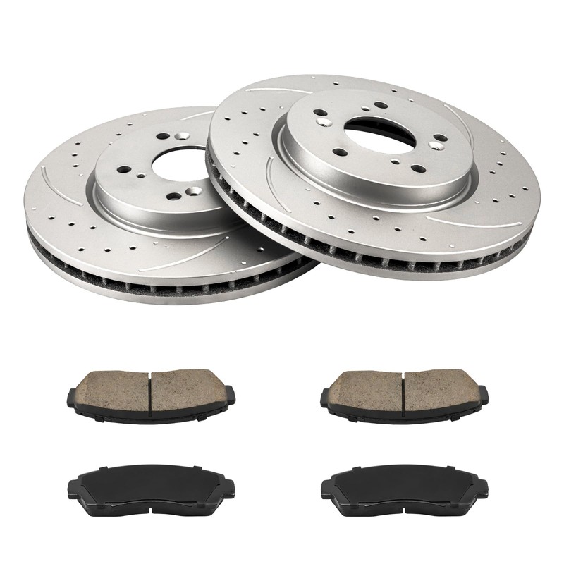 - [Package Details]: 2x Drilled and Slotted Disc Brake Rotor + 4x Disc Ceramic Brake Pads. Complete kit purchase for more timEsaving and peace of mind.
