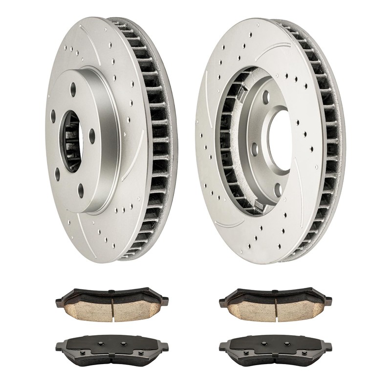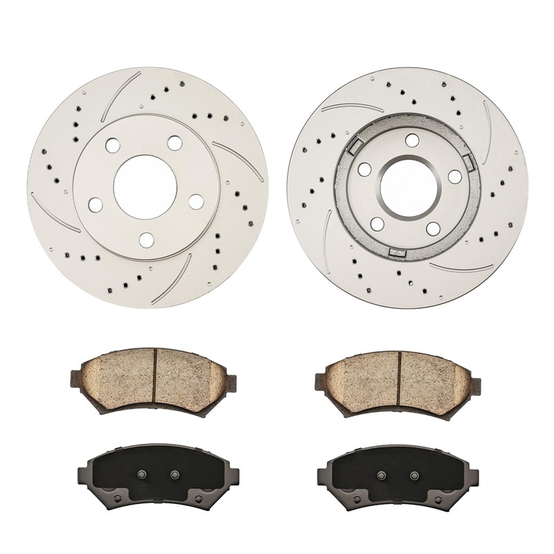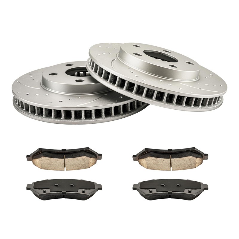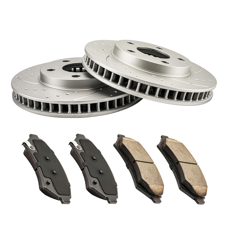 - [Package Details]: 2x Drilled and Slotted Disc Brake Rotor + 4x Disc Ceramic Brake Pads. Complete kit purchase for more timEsaving and peace of mind.
