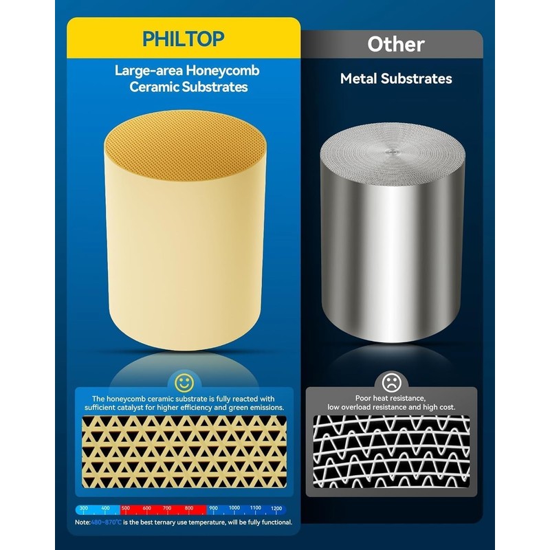 - [STAINLESS STEEL OUT SHELL] --- The high flow catalytic converters with heavy-duty stainless steel construction feature maximum durability. Firmly welded connections can withstand high temper and pressures for longer service life.