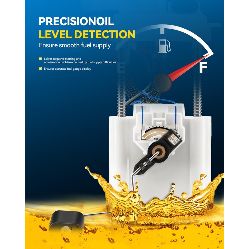 - Package - Electric fuel pump assembly includes:the fuel pump, pressure sensor, float and tank seal and is ready for direct replacement.