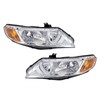 PHILTOP Headlight Assembly Pair,Chrome Housing Compatible with 2006-2011 Civic,Amber Reflector Clear Lens,OE Style Automotive Replacement Headlamp