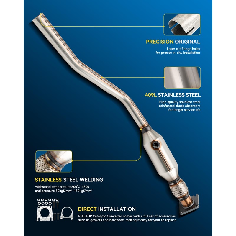 - Perfect Fitment: PHILTOP catalytic converters have been factory tested to be a perfect match to the original vehicle and we also offer complete accessories for you to install easily.Please check your car modle in amazoncomfiredfit to make sure this product is fit.