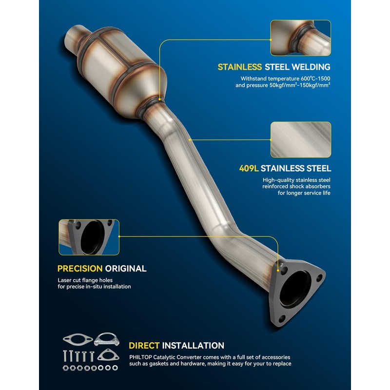 - [HIGH FLOW PERFORMANCE ] --- Our catalytic convertor are built to meet OEM specifications. They also feature a high flow design to increase conversion efficiency and vehicle power without sacrificing flow rate.They're also complete with full accessories as gaskets and hardware, facilitating your replacement.