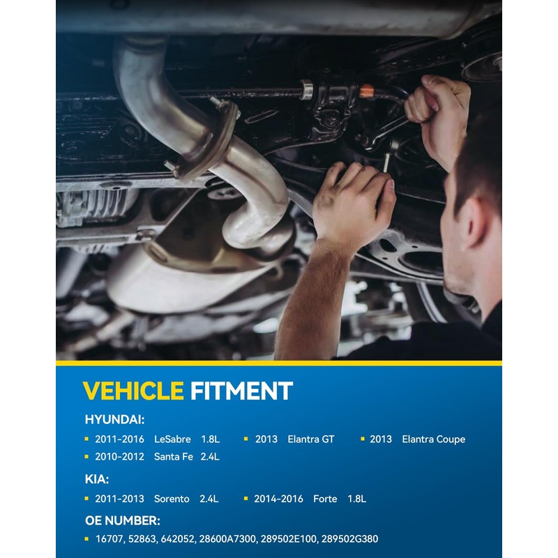 - [COMPATIBILITY] --- Catalytic converters compatible with 2011-2016 Elantra 1.8L, 2011-2013 Sorento 2.4L, 2014-2016 Forte 1.8L, 2010-2012 Santa Fe 2.4L. Reference Number: 16707 .These free-flow catalytic converters have bolt-on connections and flange to flange design for effortless installation.