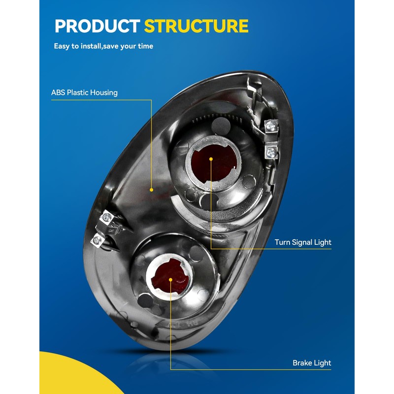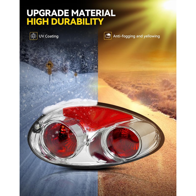 - [Durable & Long-Lasting] Made with a durable polycarbonate lens and high-impact housing, this tail light assembly is built to withstand shocks, vibrations, and road debris. The UV coating prevents yellowing over time, ensuring long-lasting clarity and performance