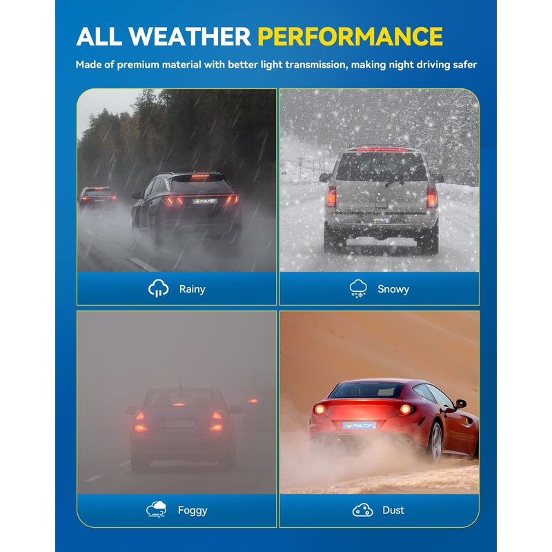 - [Weatherproof & Reliable] These tail light assemblies feature a fully sealed design with solid silicone, effectively preventing moisture from being trapped inside. They are waterproof, dustproof, and fogproof, providing reliable performance in all weather conditions, from rain to snow
