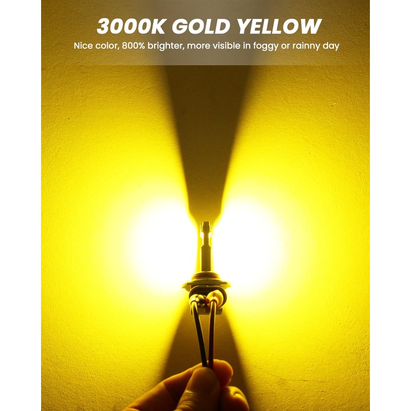 • Extremely Bright: Each Phinlion 9145 yellow LED fog light bulb is equipped with 2 high power & high output customized upgraded multi-die CSP LED Chips, 6000LM per bulb, 3000K golden yellow, 800% improved visibility makes a safer, brighter driving experience during blizzards, rain, and fog conditions