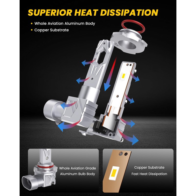 • Superior Heat Dissipation: whole aviation aluminum body and copper substrate, the highly efficient and reliable cooling system and an innovative bulb structure design makes our H10 yellow LED fog light bulb better performance and longer lifespan