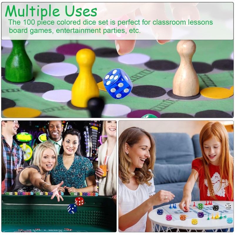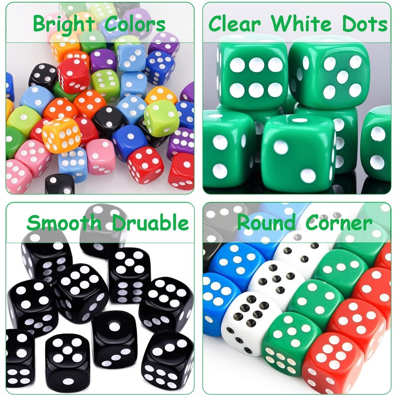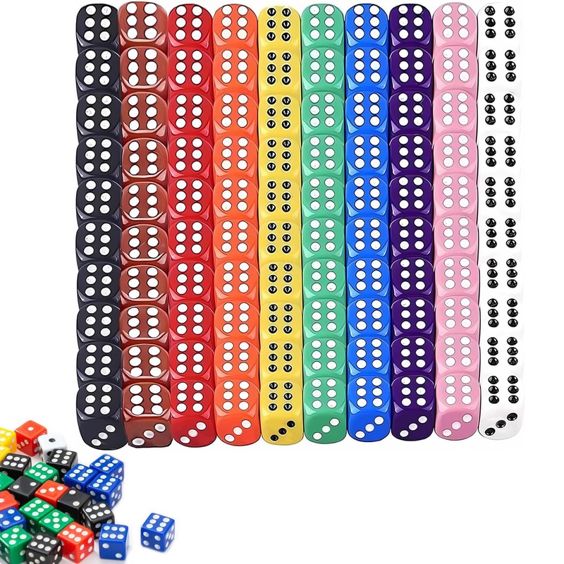 PHISGNIO Set of 100 Dice Six Sided Dice Set, Colourful Colours, Dice Set, 12 mm Dice for Dice Games, Table Games, Dice