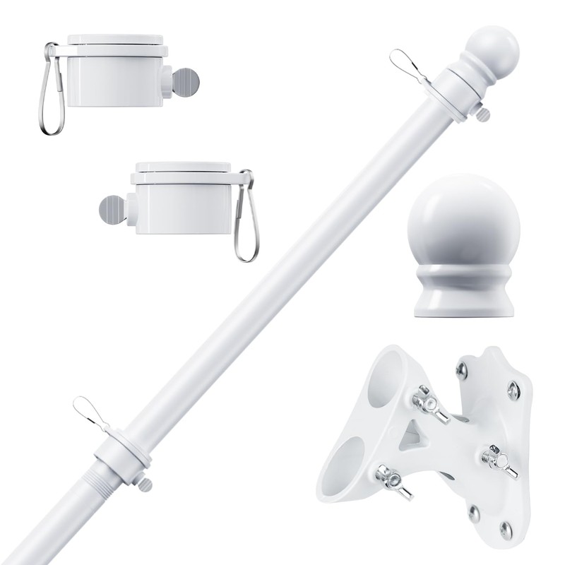 PHITRIC Flag Pole Kit, Tangle Free Spinning Stainless Steel Rustproof Flagpole for 3x5 Sports Fan Outdoor Flags for Outside House (White, 5FT, with Bracket)