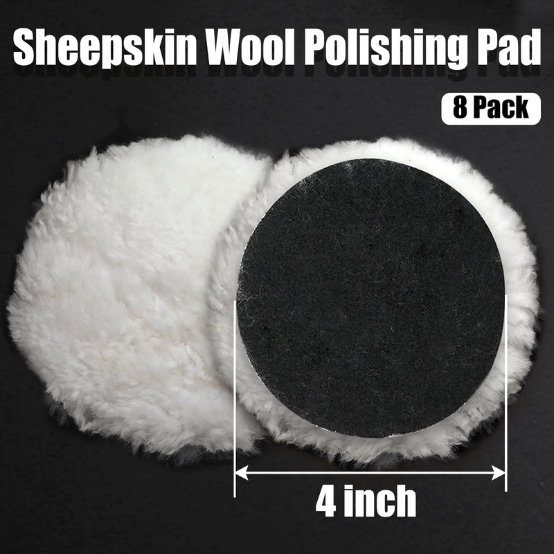 PHITUODA 8 Pcs Wool Polishing Pad 4 Inches Soft Sheepskin Buffing Pads with Hook and Loop Back for Compound Cutting & Polishing for Automotive, Marine, Furniture
