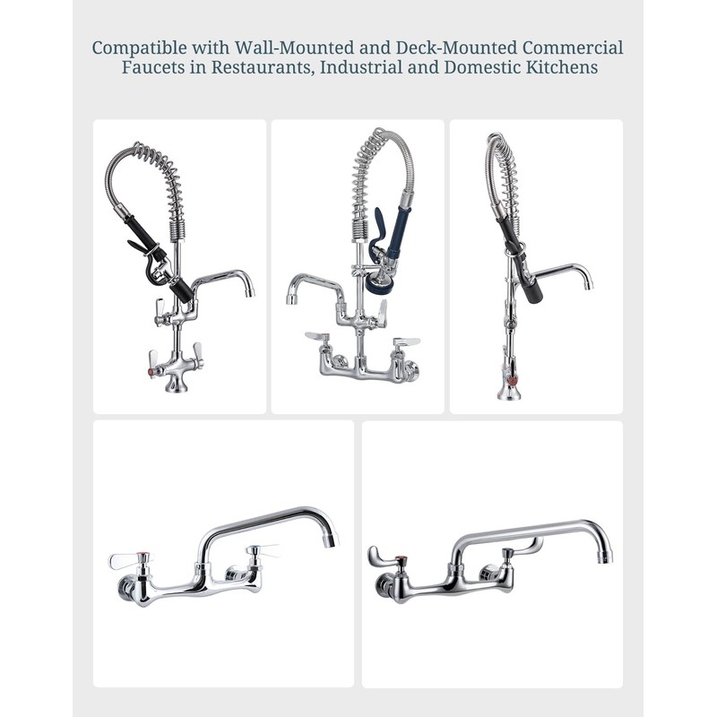 • Flexible Flow Options: Our commercial kitchen faucet has a maximum flow rate of 1.8 GPM, suitable flow rate to reduce ineffective water output, to be environmentally friendly and save water. The kitchen faucet is strong, durable and leak-proof, perfect for commercial restaurants.