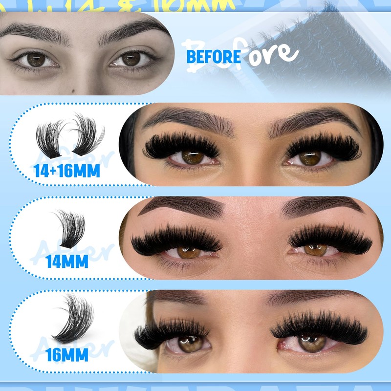 • Practical 14mm & 16mm Lengths: Focused on the most widely used lengths, 14mm and 16mm cater to everyday wear and special occasions. These versatile lash clusters sizes eliminate waste from unused lengths, ensuring you get maximum value from each eyelash clusters