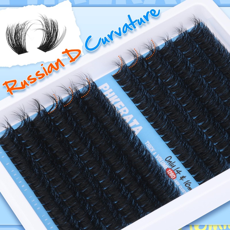 PHKERATA 14-16MM Volume Lash Clusters 120D Thick Eyelash Clusters Wispy Clust...