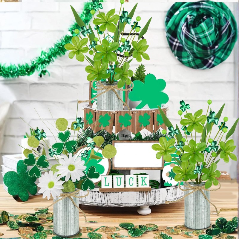 - Lucky Charm Floral Picks: A set of 2 , Shamrock picks in small vases make charming St. Patrick's Day decorations. The vibrant green shamrock accents capture the festive spirit of the holiday