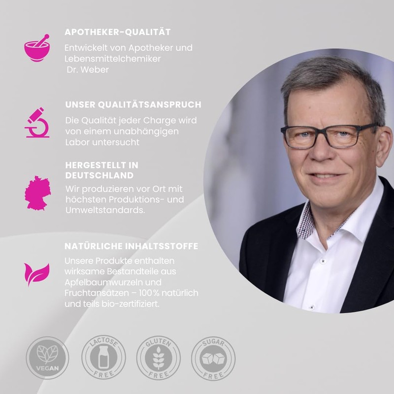 - QUALITÄTSANSPRUCH - Entwicklung von Apotheker und Lebensmittelchemiker Dr. Martin Weber. Hergestellt in Deutschland. Jede Charge wird sorgfältig kontrolliert und laborgeprüft.
