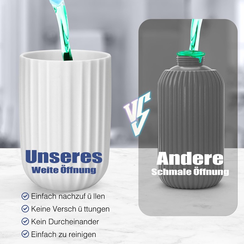 - OPEN BOTTLE DESIGN The 250ml capacity and open bottle mouth make filling easy and spill-free. Add foam soap directly or dilute gel/liquid soap with 3 to 4 times the water content for perfect lather