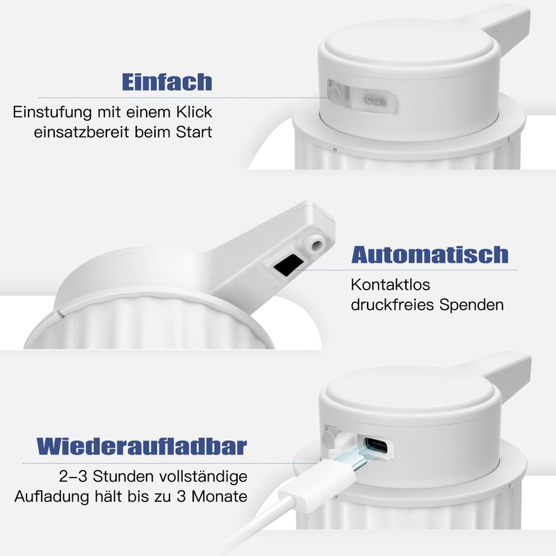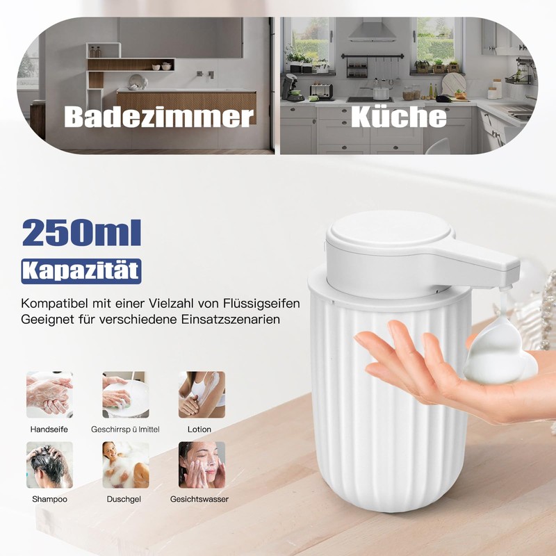 Phneems Soap Dispenser Automatic Foam Soap Dispenser Electric Soap Dispenser with Sensor 250 ml Soap Dispenser Automatic USB Charging IPX5 Waterproof for Bathroom Kitchen White