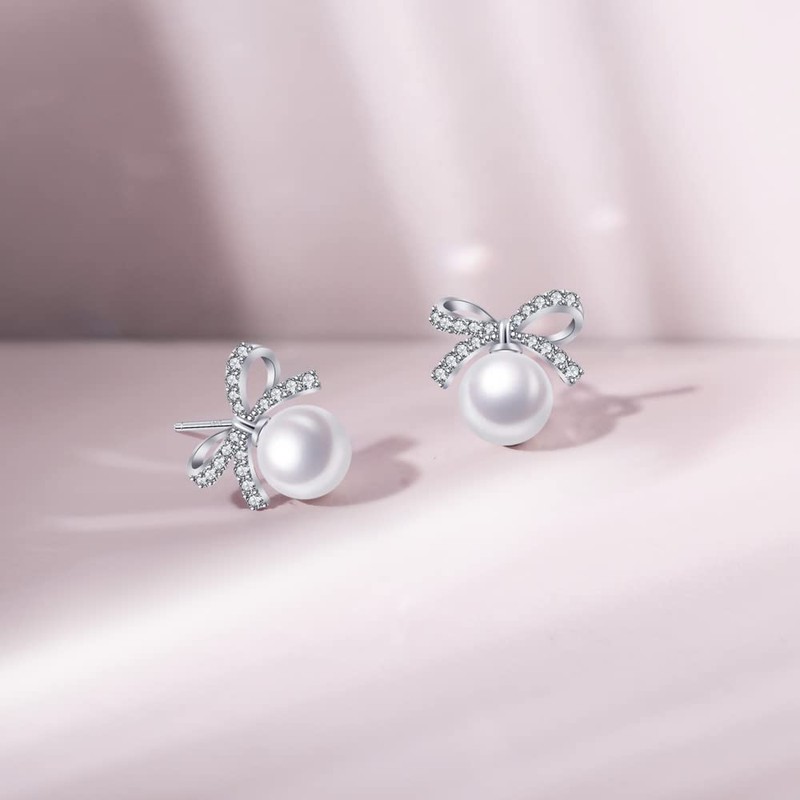 - Timeless beauty: the pearl earrings silver 925 are presented in a stylish bow design. The cubic zirconia embedded in the bow create a dazzling effect, catch the light and give the earring a glamorous touch. The additional beads give the earring a timeless and traditional element that enhances its overall beauty and appeal